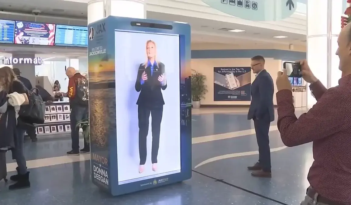 The removal of a controversial ‘hologram’ of Jacksonville, Florida’s Mayor Donna Deegan from Jacksonville International Airport has sparked a broader debate about the intersection of public funding, technological innovation, and government accountability. The 3D screen, which displayed a life-sized, multilingual video of Deegan welcoming travelers, was installed in December 2024 and removed after six months. The project, developed by startup Proto, initially cost $30,000 but ballooned to $75,000, according to a report by the Florida Department of Government Efficiency, a state agency tasked with curbing wasteful spending. The agency drew comparisons to Elon Musk’s DOGE initiative, which seeks to streamline government operations through efficiency measures. Critics, including members of the city council, called the expenditure excessive, with Florida Chief Financial Officer Blaise Ingoglia condemning it as an example of ‘wasteful spending.’
